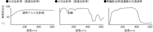 被設計好的GLASS成形板上,鍍有數種的金屬化合物薄膜的金鏡.紫外線有很好的反射效率,沒有寄與UV硬化,可視光線及紅外線而是透過鏡的後方. |